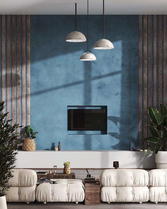 Для стен гостиной было выбрано декоративное покрытие с фактурой матовой замши Polivelure Opaco. Мягкая обивка мебели, деревянное элементы, предметы декора из натуральных материалов – все это делает интерьер комфортным и располагающим к отдыху, а визуально и тактильно приятная фактура стен поддерживает атмосферу спокойствия и уюта.