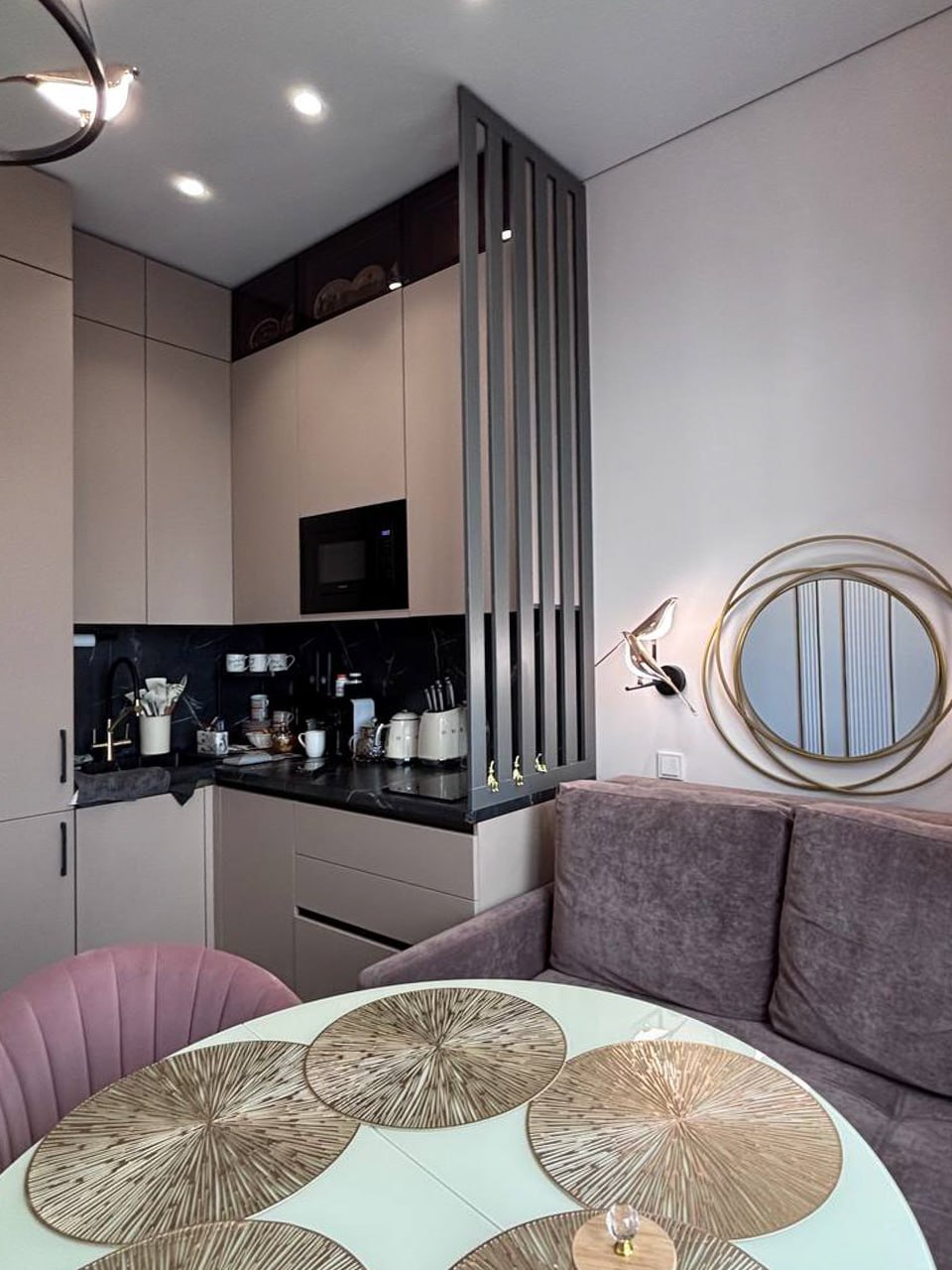 Гостиная-спальня. Было принято решение отказаться от объединенных студий-пространств, чтобы все обитатели этого дома могли спокойно высыпаться. Гостиную совместили не с кухней и столовой, а со спальней, и получилась изолированная уютная комната.